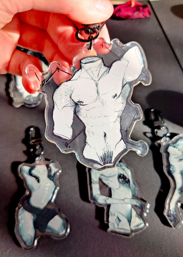 Welcome to the second part of my dark and witchy keychains collection which focuses on anatomical bodies, from beautiful muscular chests to non-binary and trans representation !