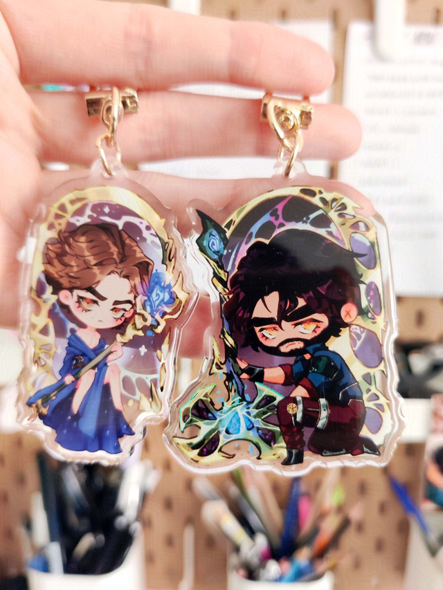 Jayce Tallis and Viktor from Arcane season 2 matching keychains ! I couldn't resist Viktor's commune outfit and Jayce's beard.