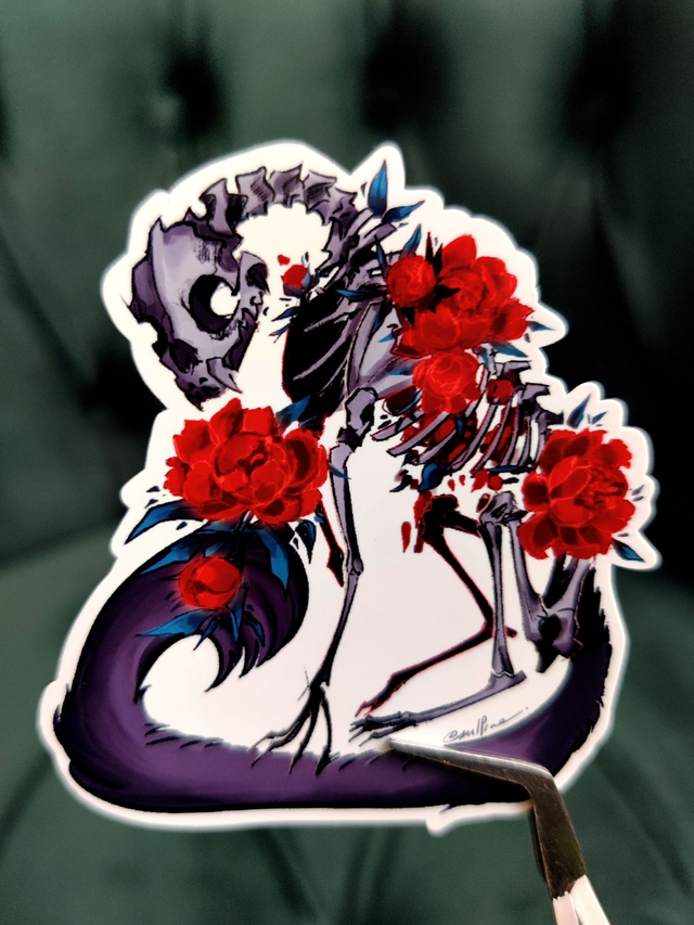My stickers are drawn at home, then printed on an EPSON ecotank on glossy printable vinyl. I use a plotter machine to cut them. The glossy sticker keeps all the grainy details of the graphite pencils and give the sticker a traditionnal vibe. It's great to decorate notebooks, laptops and journals ! Due to the vinyl this sticker is waterproof more resistant to scratches and can be used outside and on waterbottles ! I recommend to avoid the dishwasher to keep it longer.